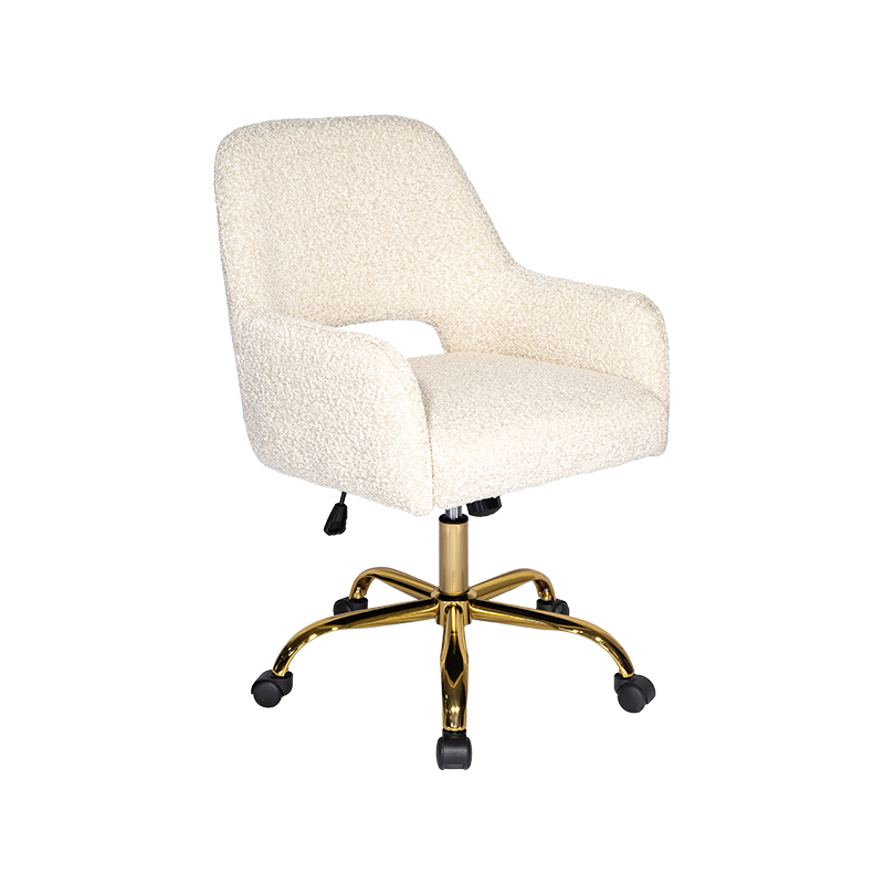 Elektroplierte goldene Beine, weißer hingbarer Bürostuhl
