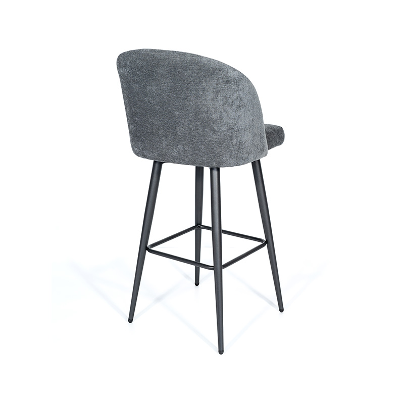 Heben Sie Ihre Restaurant, Bar oder Küche Dekor mit unserem Klassischer Schwarzstahl -Barhocker Mit einem komfortablen grauen Stoffsitz und einer eleganten, gekrümmten Rückenlehne. Dieses vielseitige vierbeiniger Stuhl Kombiniert Haltbarkeit mit dem zeitgenössischen Stil und macht es sowohl für den kommerziellen als auch für die Wohngebrauch perfekt.