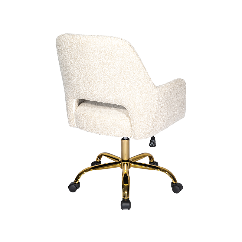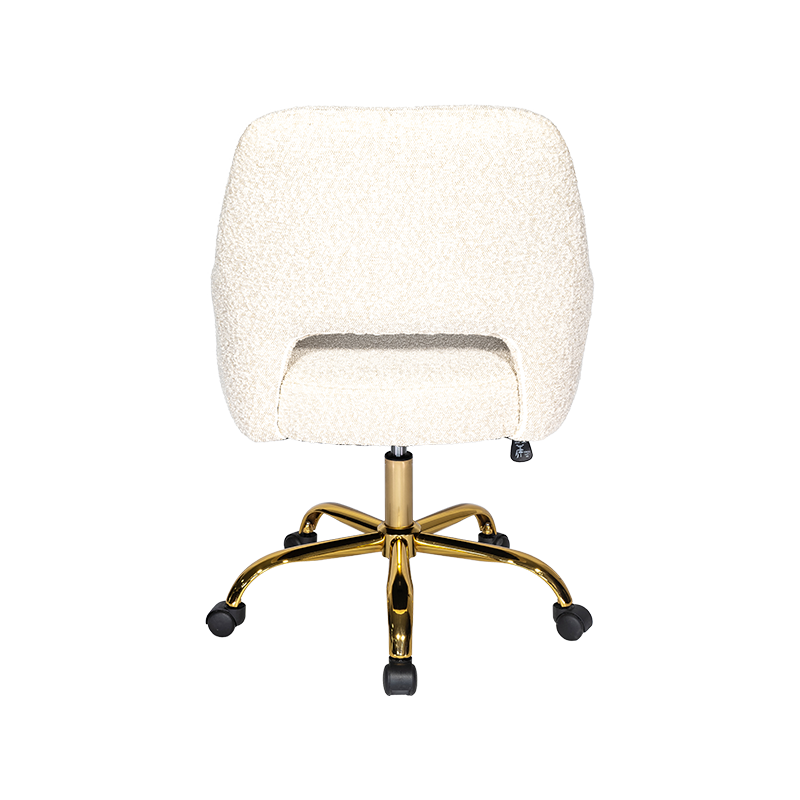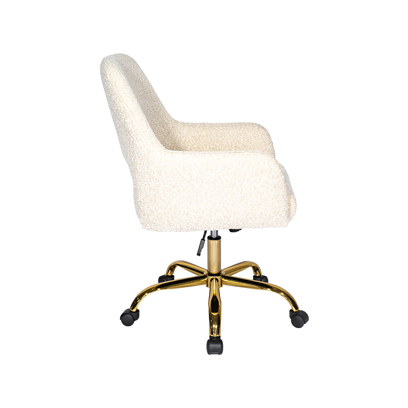 Advanced Design Office Chair mit trendiger Schleifengarnstoff und interner Federpackstruktur, um ein komfortables Sitzerlebnis beim Gebrauch zu gewährleisten. Ausgestattet mit einer kostenlosen Funktionsfach, kann die Neigung entsprechend den eigenen Bedürfnissen des Benutzers eingestellt werden. Der untere Teil ist mit einer Hebeluftstange gemäß den internationalen Standards ausgestattet, sodass Benutzer auch die gewünschte Höhe frei anpassen können. Die Farbe des unteren Teils ist elektroplattiertes Gold, wodurch der gesamte Stuhl luxuriös und atmosphärisch aussieht. PU -Räder mit automatischer Bremsfunktion stellen sicher, dass der Stuhl beim Gebrauch nicht frei gleitet. Dieses Produkt wird hauptsächlich im Büro, im Heimstudium usw. verwendet