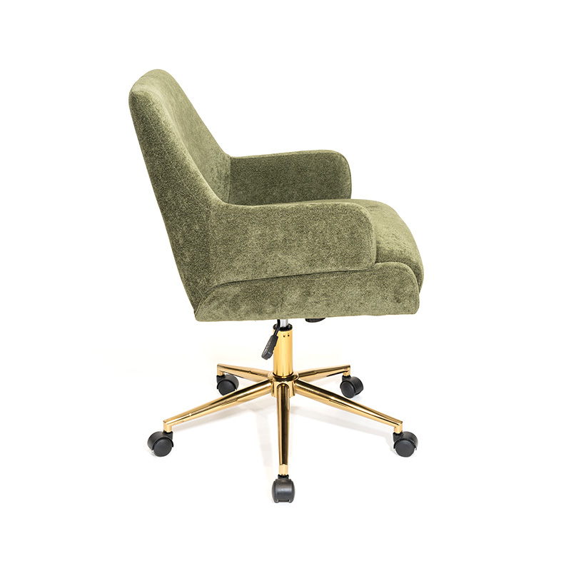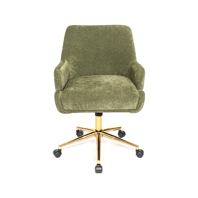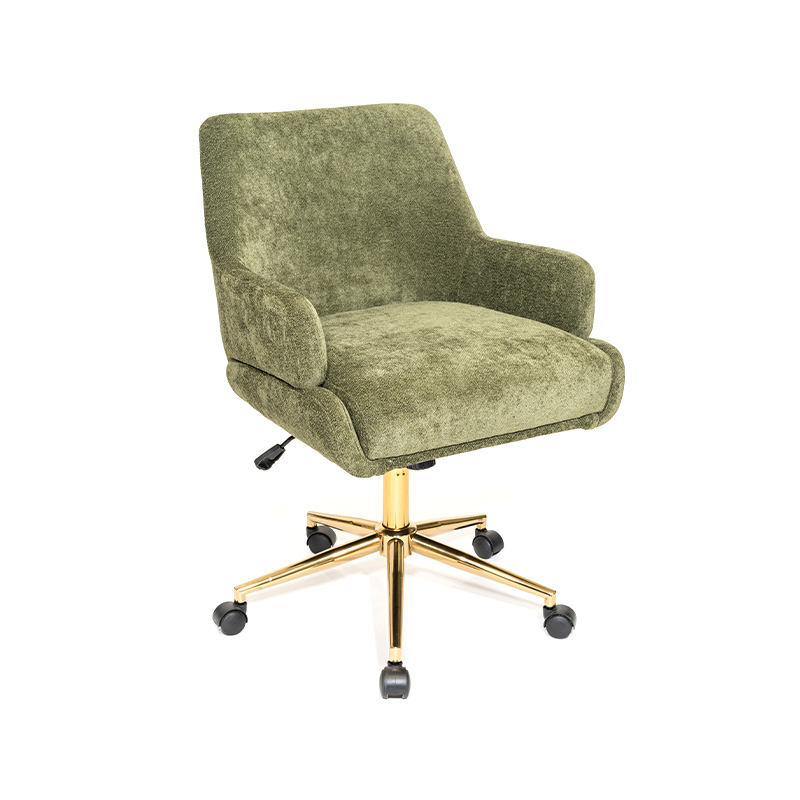 Aktualisieren Sie Ihren Arbeitsbereich mit unserem Moderner Schwenkbürostuhl mit einem schlanken Goldene Basis und Premium -Stoffpolsterung. Entworfen sowohl für Komfort als auch für Stil, dies Rolling Desk Stuhl Ist perfekt für Ihr Heimbüro oder Ihr Unternehmensarbeit.